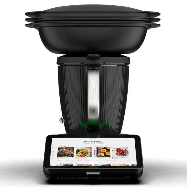 Erleben Sie ein modernes und elegantes design mit Wärmedämmung, einem wirklich leisen Motor und einem atemberaubenden 10-Zoll-Multitouch-Display, das ein völlig neues guided cooking-Erlebnis bietet. Darüber hinaus verfügt er mit dem Varoma® über 45% mehr Dampfraum als mit dem TM6. Der bräunungsmodus ist jetzt auch beim manuellen Kochen verfügbar.